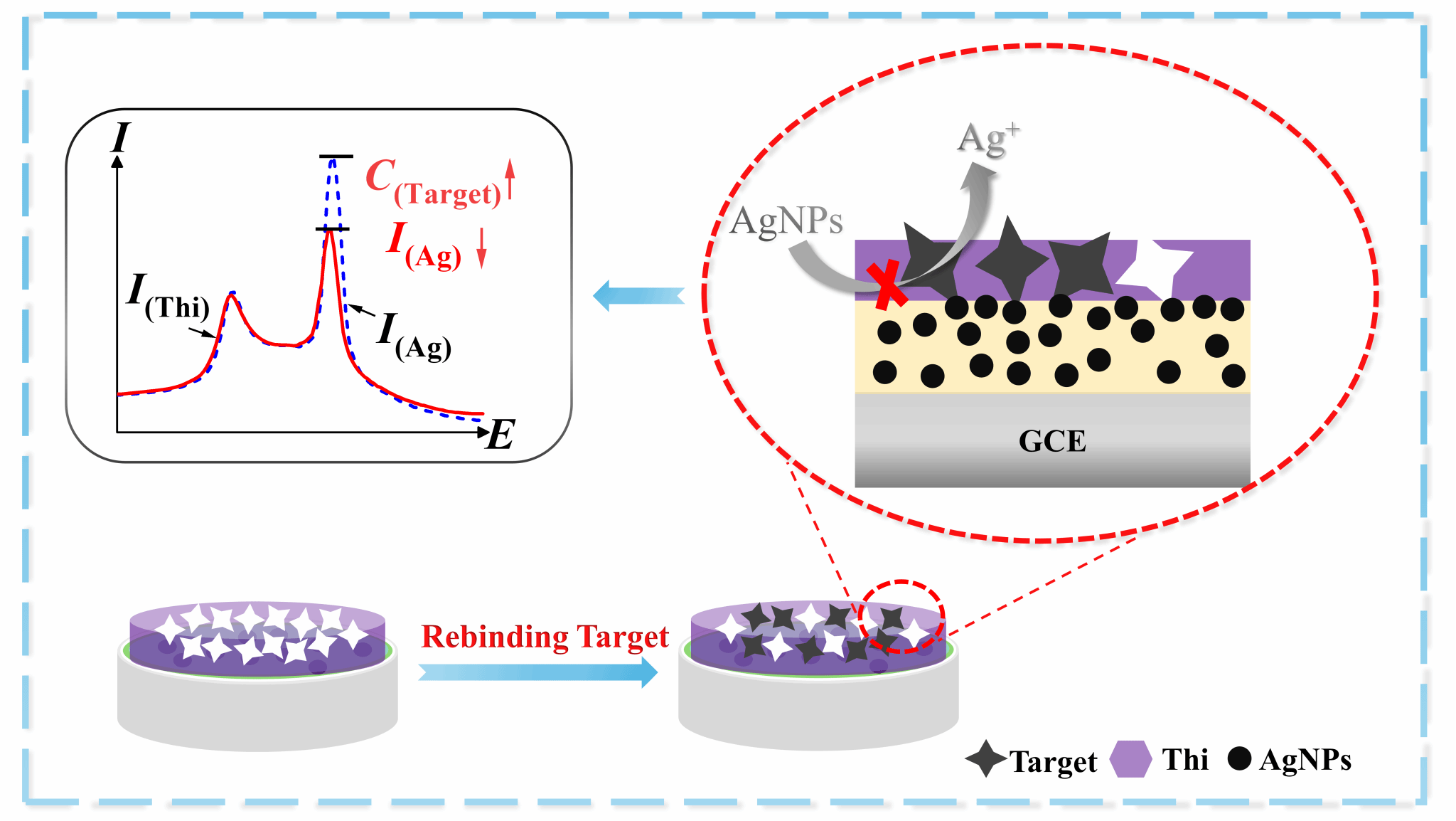 本文研制了一种基于银纳米颗粒(AgNPs)和离子液体(IL)共修饰Ti2NTx(AgNPs@Ti2NTx@IL)的新型比率型分子印迹电化学传感器(MIP-RECS),用于检测棒曲霉素(PAT)。首先,通过原位还原自组装法制备了AgNPs@Ti2NTx@IL纳米复合材料,并将其滴涂在玻碳电极(GCE)表面,构建具有优异导电性和高比表面积的电极界面。随后,以硫堇(Thi)和PAT分别作为功能单体和模板分子,采用电聚合法在纳米复合材料修饰的GCE上沉积分子印迹聚合物(MIP)。在该传感平台中,以Thi和AgNPs产生的氧化峰分别作为参考信号和检测信号。参考信号的引入有效消除了基质效应的干扰,同时AgNPs@Ti₂NTₓ@IL纳米复合材料的高导电性和大比表面积显著增强了Ag探针的氧化信号。因此,该MIP-RECS传感器呈现出较宽的线性范围、极低的检测限(LOD),并具备高选择性和优异的重复性。此外,通过调控Ag的负载量可实现传感器线性范围和检测限的精确调控,使其在不同类型实际样品中均表现出良好的适用性。