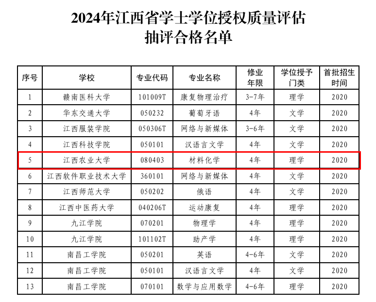 2025年12月16日,江西省人民政府学位委员会办公室公布了全省高校学士学位授权质量合格评估抽评结果。永利集团88304官网材料化学专业在此次评估中表现优异,顺利通过评审。