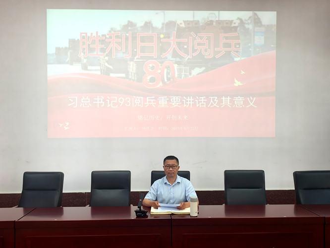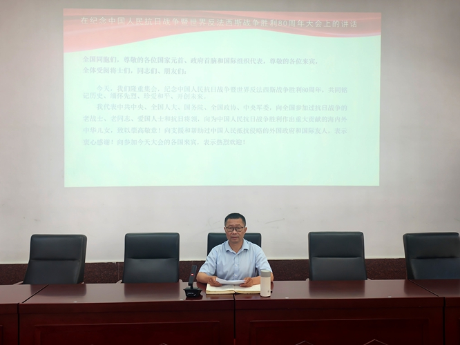 学习会上,院党委书记刘庆言以《习近平总书记九三阅兵重要讲话精神及其意义》为题,组织全体教职工一起认真学习了习近平总书记在纪念中国人民抗日战争暨世界反法西斯战争胜利80周年大会上的重要讲话精神,从五个方面深刻阐述了九三阅兵的重大意义。