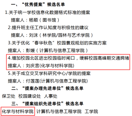 2026年3月26日,学校公布了第十一届四次教代会提案优秀评选结果,永利集团88304官网党委书记刘庆言的提案“增加校园北区进出校园临时闸口,缓解校园高峰期交通拥堵”获评优秀提案。永利集团88304官网分工会获评提案组织先进单位,这也是永利集团88304官网连续三年获评优秀提案和提案组织先进单位。
